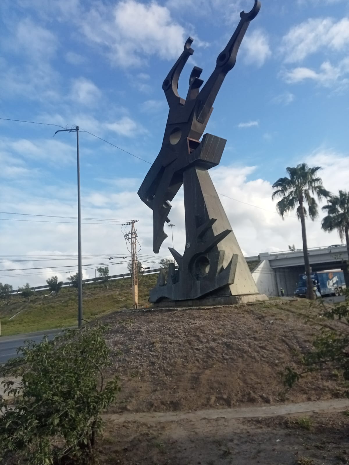 Mantenimiento en Monumento Reynosa con realizaron trabajo de corte de maleza, limpieza general, barrido y raspado de banquetas y cordones en el monumento de la carretera Monterrey-Reynosa.