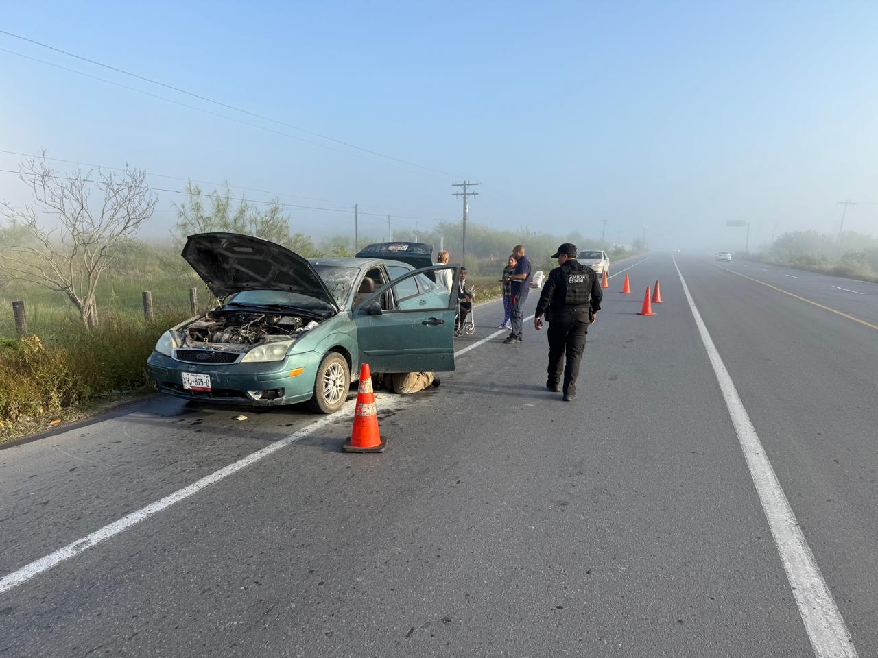 El incendio se registró a la altura del kilómetro 294 del tramo Matamoros–San Fernando, a unos 50 metros del entronque al poblado El Mezquital, donde un vehículo marca Ford Focus comenzó a incendiarse tras un corto circuito en el cableado eléctrico.