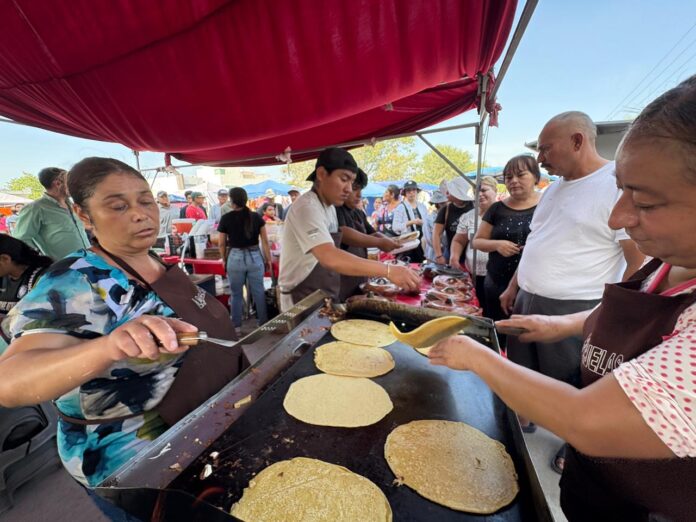 Las mujeres del tianguis también participaron preparando antojitos tradicionales, mostrando el espíritu solidario que caracteriza a Reynosa y sobretodo el apoyo al comercio local.