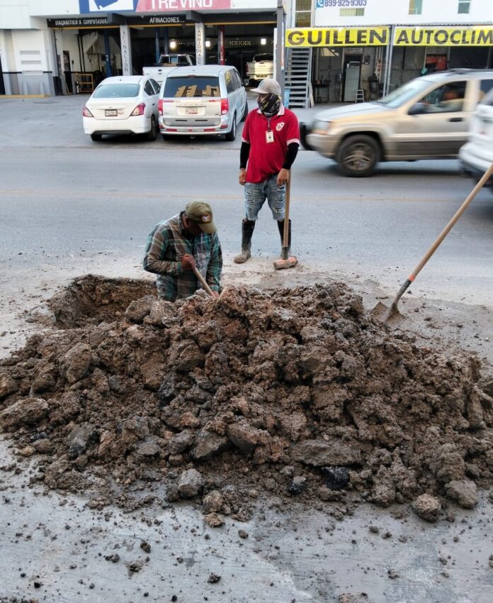 Por instrucciones del Alcalde, Carlos Peña Ortiz, la Comisión Municipal de Agua Potable y Alcantarillado de Reynosa continúa trabajando en la reparación de fugas de agua potable en diferentes puntos de la ciudad, con el objetivo de evitar el desperdicio del vital líquido y mejorar el suministro.