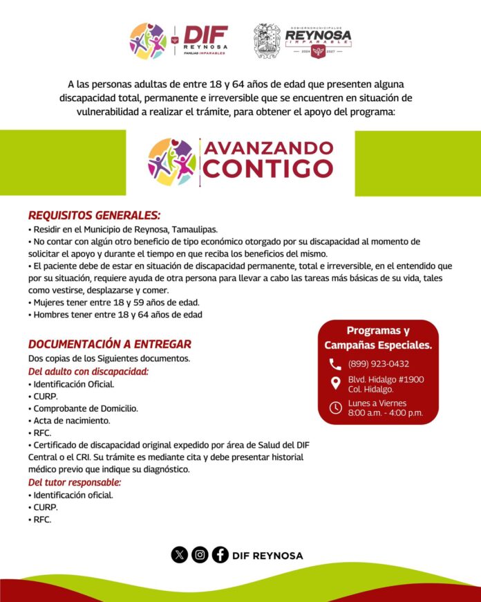Las becas “Contigo Soy Capaz”, “Avanzando Contigo”, “Apoyando Tu Futuro” y “Pequeños Héroes” del DIF-Reynosa, forman parte del compromiso permanente del Alcalde, Carlos Peña Ortiz, de apoyar a las familias que enfrentan situaciones de vulnerabilidad, por lo que se invita a estar atentos a las fechas correspondientes.