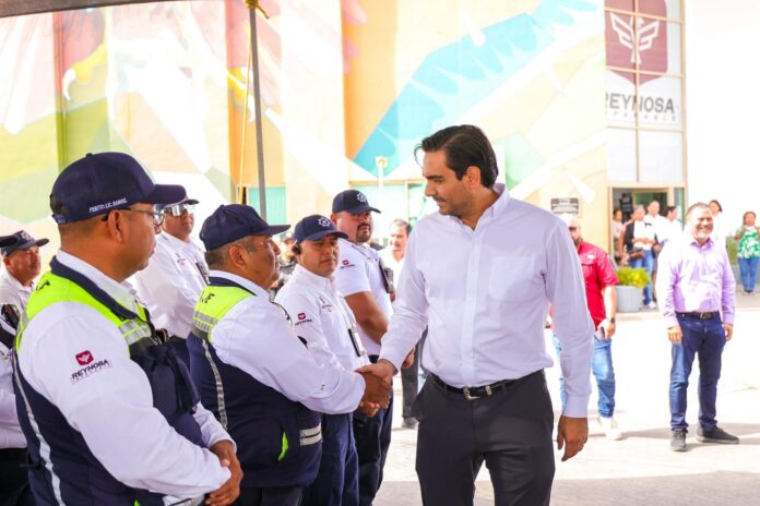 Reynosa, Tamaulipas.– Reafirmando que la seguridad de la ciudadanía es una de las prioridades centrales de la actual administración municipal, el alcalde Carlos Peña Ortiz encabezó la entrega oficial de uniformes y equipo táctico a los elementos de la Secretaría de Seguridad Pública, Tránsito y Vialidad.