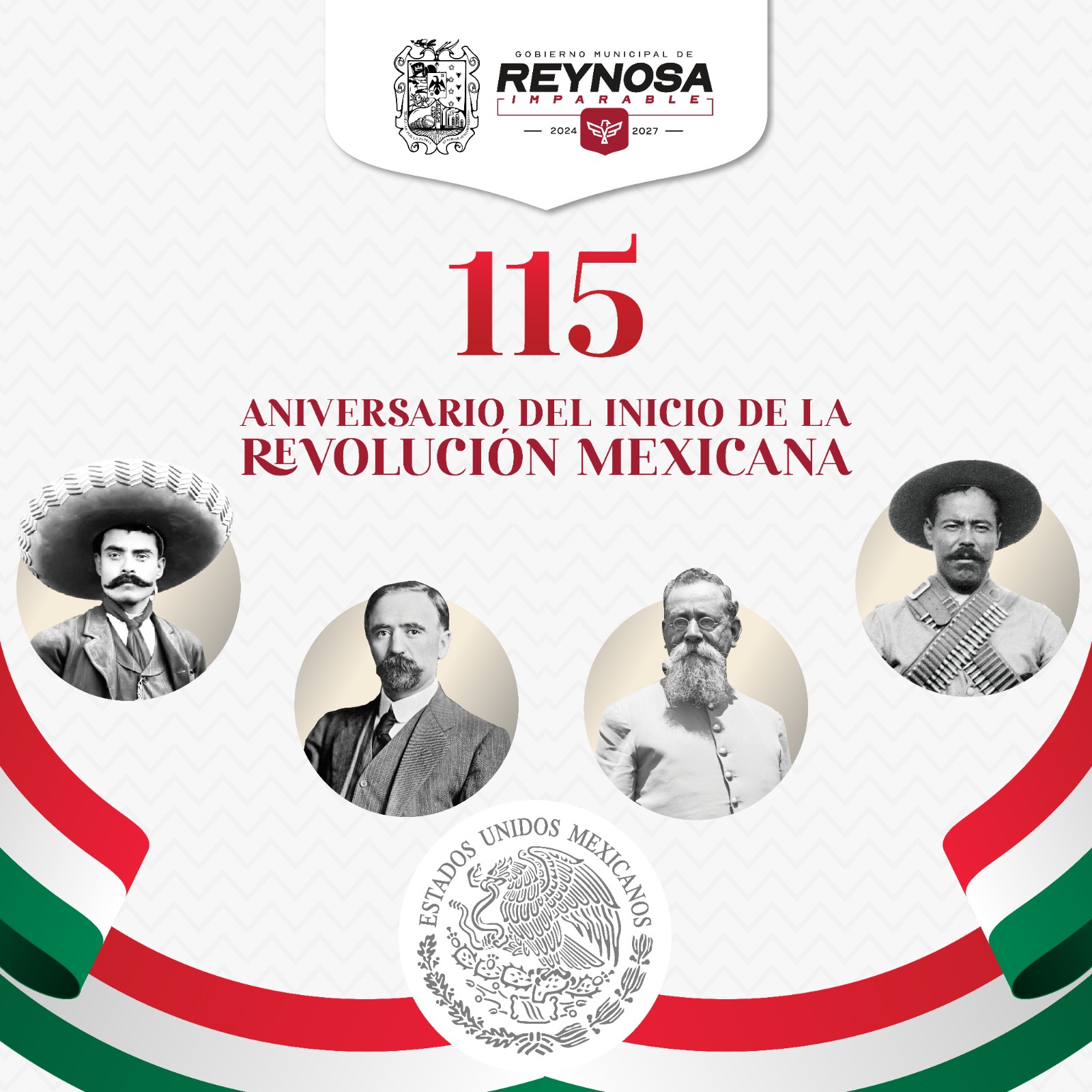 El Gobierno Municipal de Reynosa, que preside Carlos Peña Ortiz, invita a la población a presenciar, este jueves 20 de noviembre, el Desfile Conmemorativo del 115 Aniversario del Inicio de la Revolución Mexicana, encabezado por las Fuerzas Armadas, al frente de 34 contingentes de corporaciones policiacas, clubes sociales, deportivos y escuelas locales, a partir de las 9:00 de la mañana.
