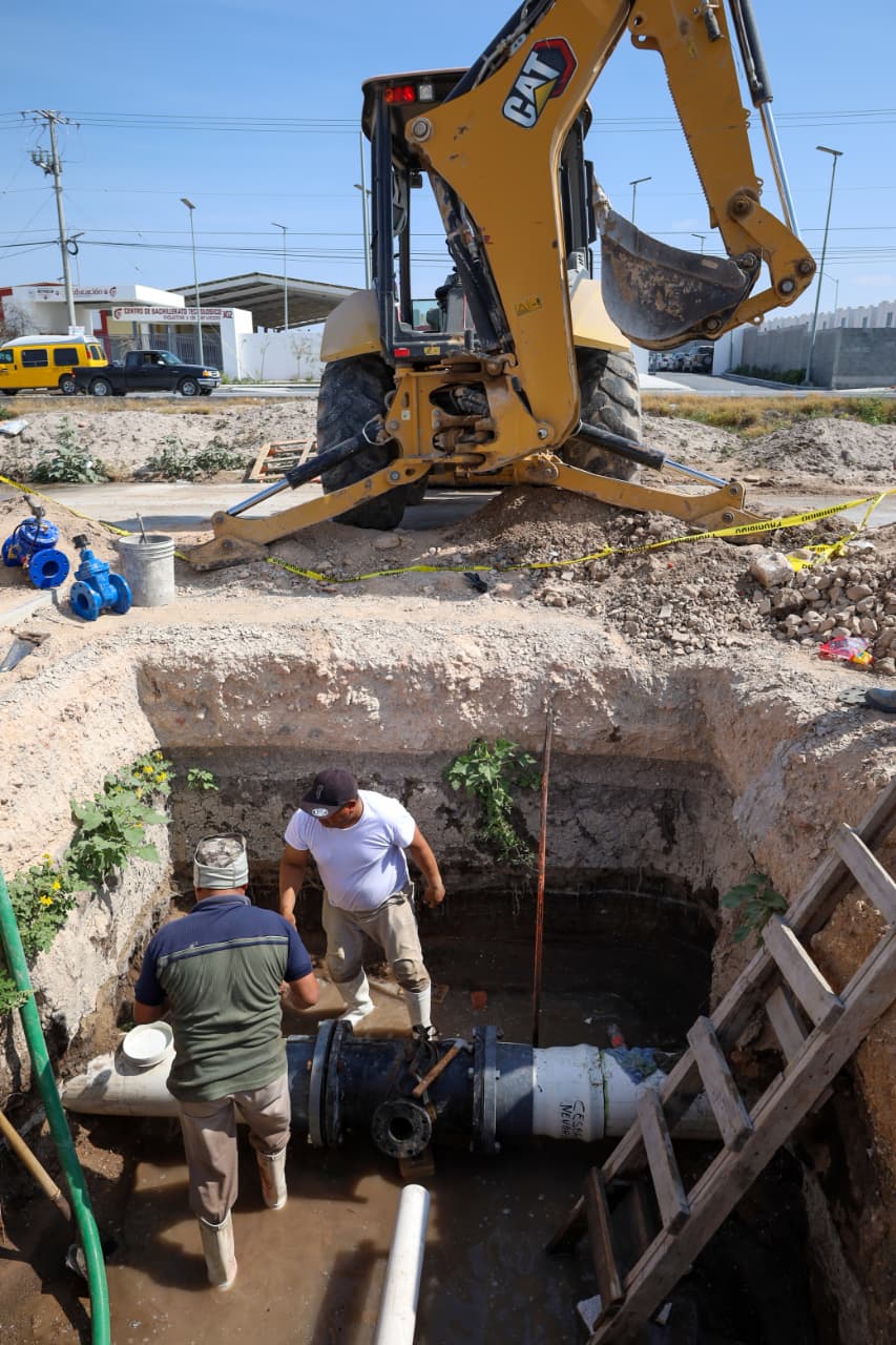 Por instrucciones del Presidente Municipal, Carlos Peña Ortiz, la Comisión Municipal de Agua Potable y Alcantarillado de Reynosa lleva a cabo trabajos de interconexión de tubería de agua potable sobre la avenida Ramón Pérez, en la colonia Vista Alta, como parte de las acciones para fortalecer la red de distribución en este sector.