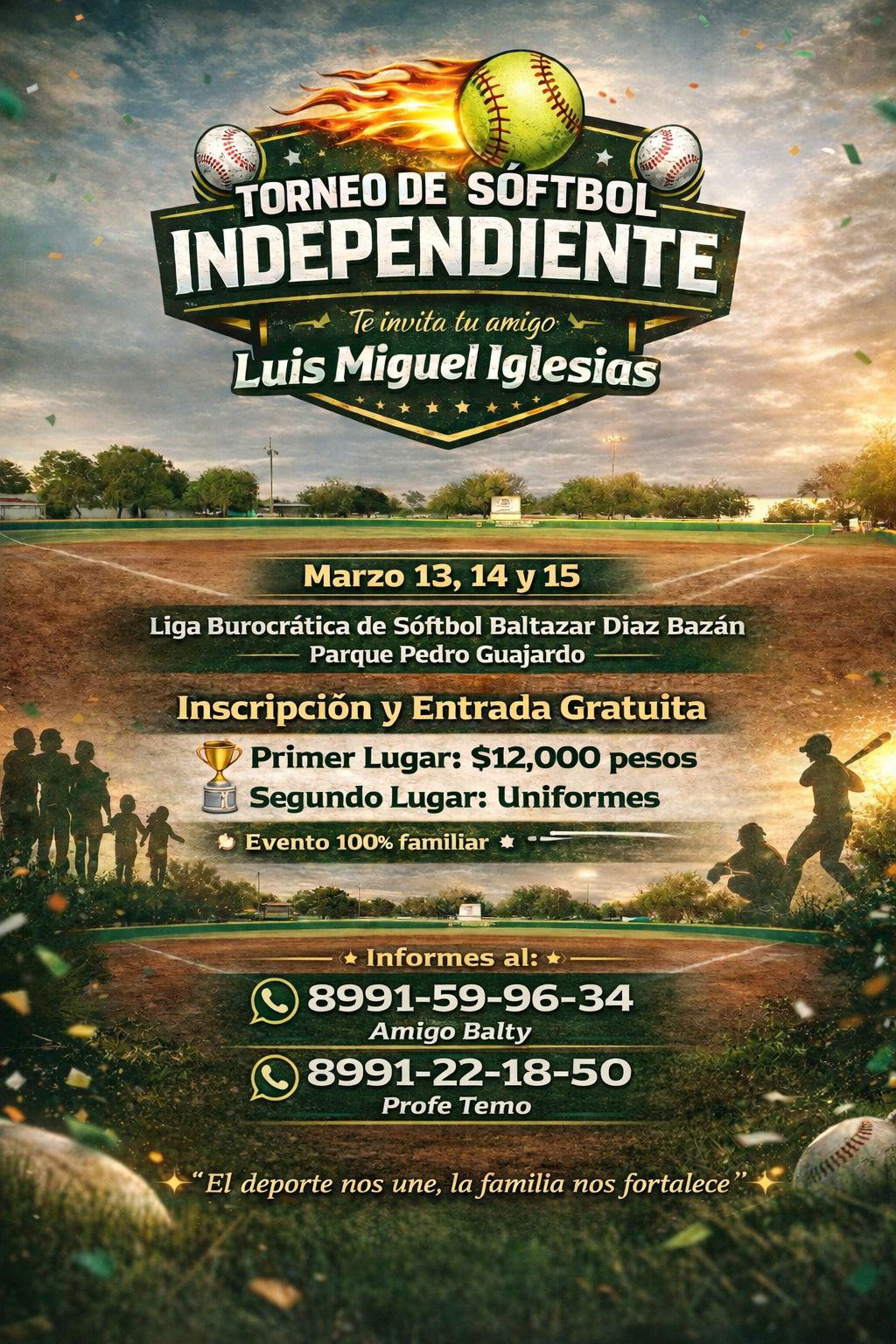 Reynosa, Tamaulipas.– El empresario Luis Miguel Iglesias ha lanzado una invitación a la ciudadanía para participar en el Gran Torneo INDEPENDIENTE de Sóftbol, un evento deportivo que busca fomentar la unión, el compañerismo y el talento local. El torneo promete sana convivencia, grandes premios y momentos inolvidables en familia.