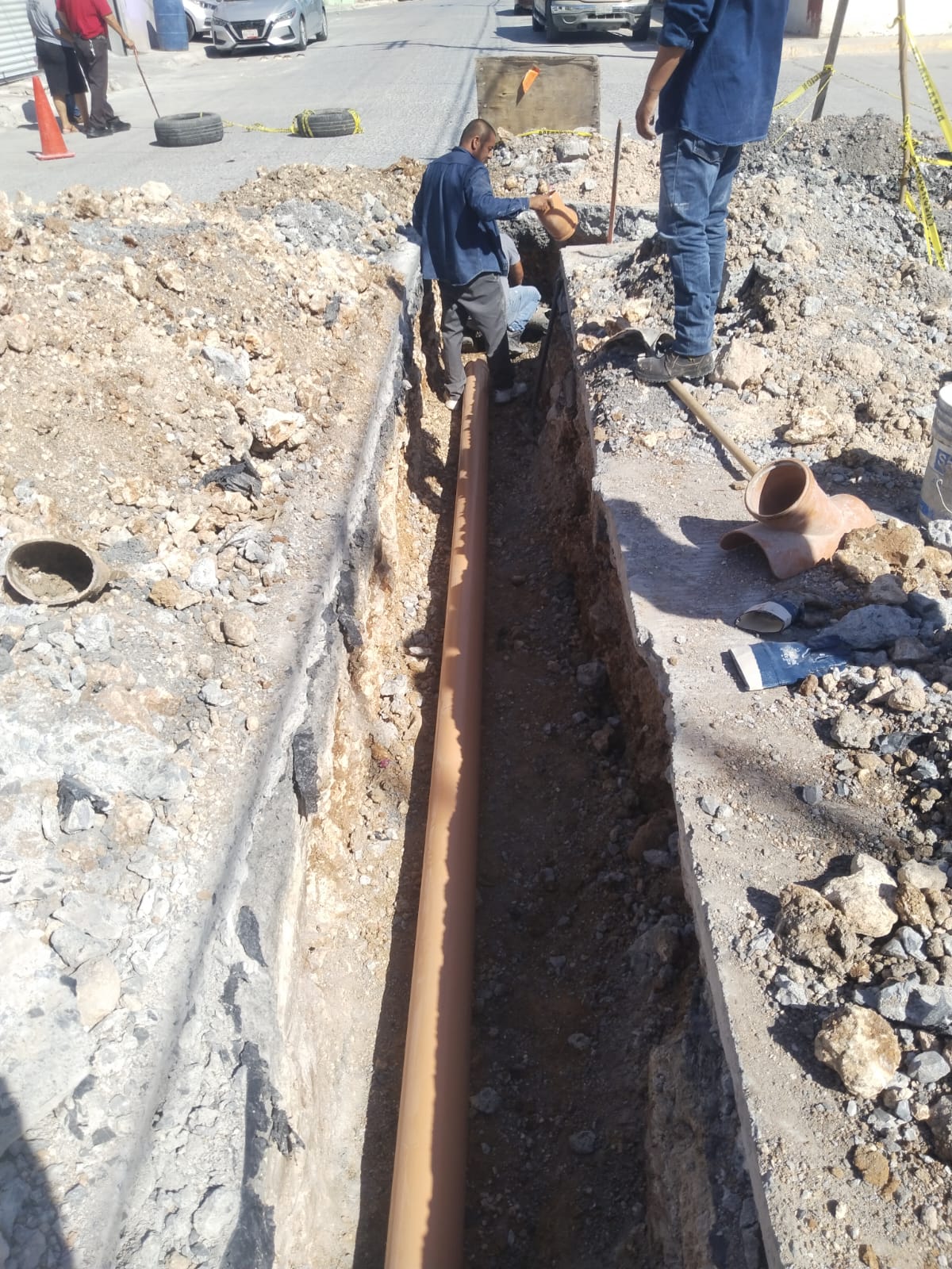 Como parte de las acciones permanentes para mantener en óptimas condiciones la infraestructura sanitaria, la Comisión Municipal de Agua Potable y Alcantarillado de Reynosa realizó trabajos de reparación de una descarga dañada sobre la calle Miguel Hidalgo con Aldama, en la colonia Voluntad y Trabajo.