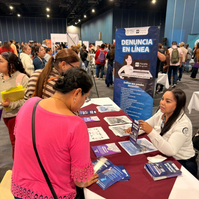 Reynosa, Tamaulipas.– La Fiscalía General de Justicia del Estado de Tamaulipas, a través de la Dirección de Atención y Servicio a la Comunidad y la Dirección General de Formación y Servicio Profesional de Carrera, participó en la “Feria Nacional de Empleo para las Mujeres 2026”, organizada por la Secretaría del Trabajo y Previsión Social en coordinación con el Servicio Nacional del Empleo.