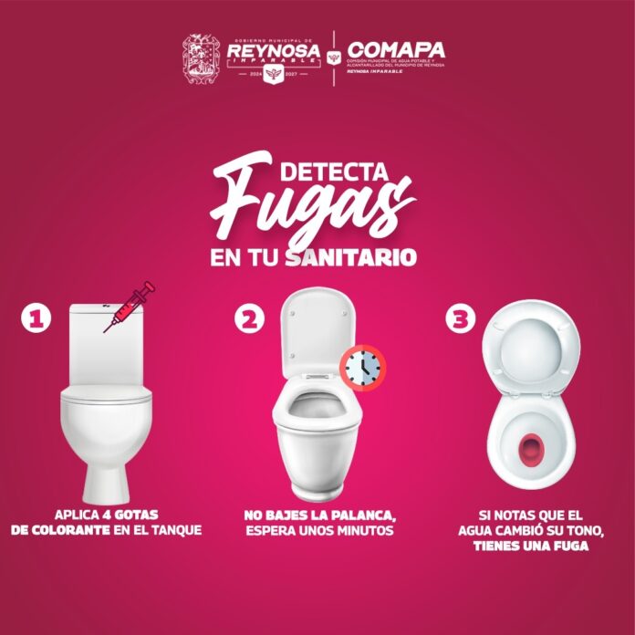 La Comisión Municipal de Agua Potable y Alcantarillado de Reynosa recomienda a la ciudadanía revisar periódicamente sus instalaciones sanitarias, ya que pueden presentarse fugas no visibles que generan un desperdicio constante de agua en los hogares.