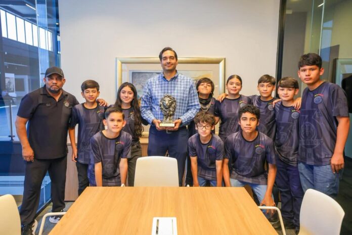 El Presidente Municipal de Reynosa, Carlos Peña Ortiz, recibió a los integrantes del equipo infantil de futbol Leones Negros, destacando el orgullo que representa para la ciudad contar con niñas y niños que portan con pasión, disciplina y compromiso el nombre de Reynosa.