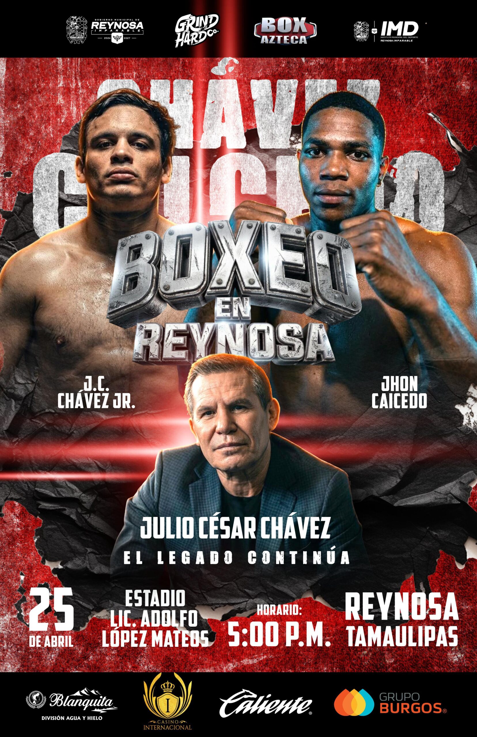 El Presidente Municipal Carlos Peña Ortiz invita a los aficionados de Reynosa y del Valle del Sur de Texas a la función estelar de Boxeo Profesional del púgil mexicano Julio César Chávez Jr., quien el próximo 25 de abril subirá al ring para enfrentarse al colombiano Jhon Caicedo teniendo como escenario el majestuoso parque Adolfo Lopez Mateos, donde habrá 17 peleas más.