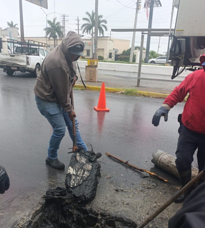 La Comisión Municipal de Agua Potable y Alcantarillado de Reynosa llevó a cabo la reparación de una alcantarilla ubicada en el estacionamiento de un centro comercial, en el cruce de Fuente de Diana y bulevar Hidalgo, logrando solucionar el brote de aguas residuales que afectaba a comerciantes y transeúntes del área.